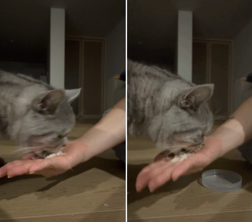 영양제 먹일때마다 간식을 조금 손에 같이 덜어주면