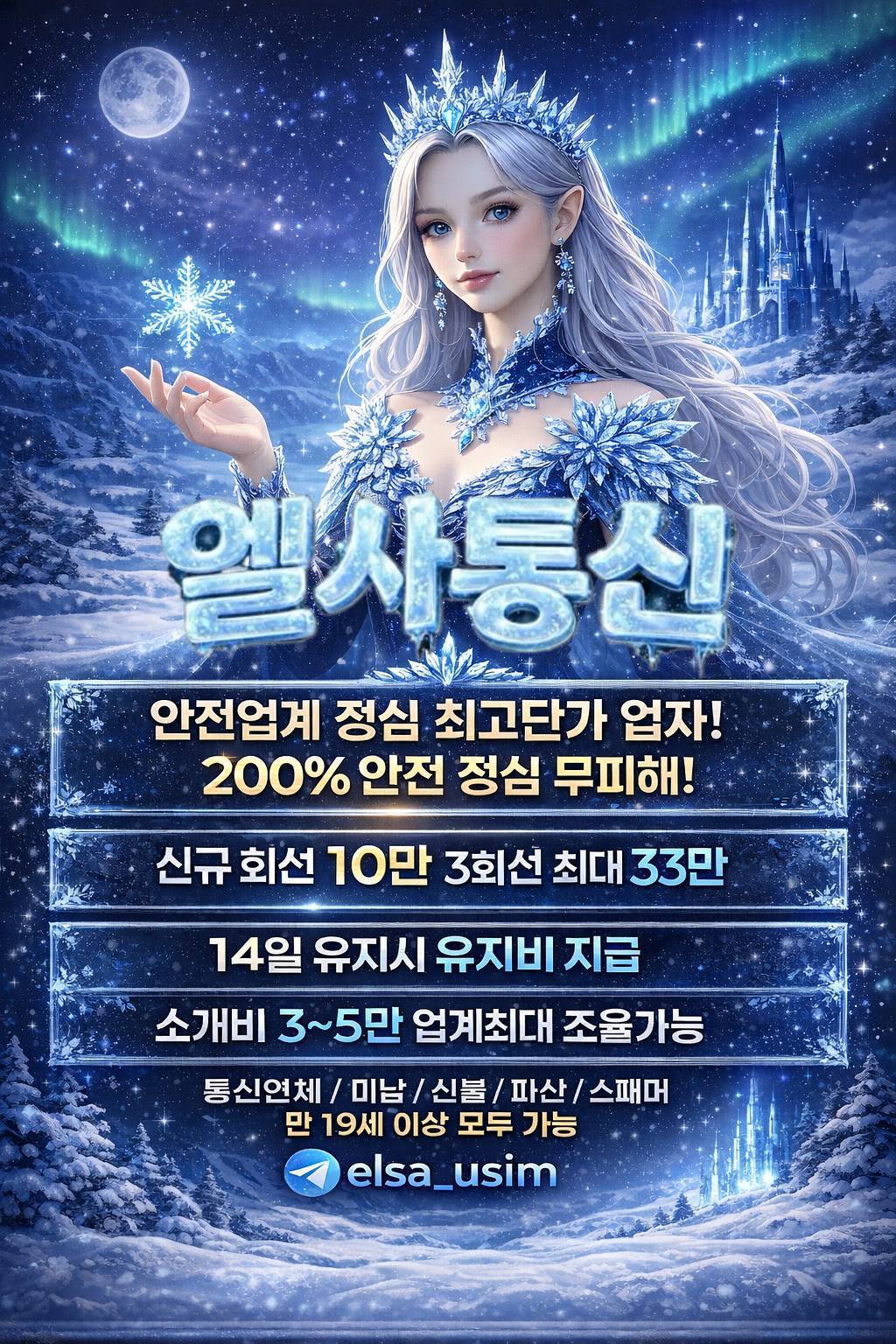 안전업계 정심 최고단가업자! 200%안전 정심 무피해! 신규회선 10만 3회선 최대 35만 14일 유지시 유지비 지급 소개비 3-5만 업계 최대 조율가능 통신연체/미납/신불/파산/ 만 19세 이상 모두 가능! 텔레그램:@elsa_usim