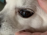 강아지 털이 뭉쳐서 들어 간거에요 그거는 강아지 인공 눈물 넣어 주면 괜찮아집니다