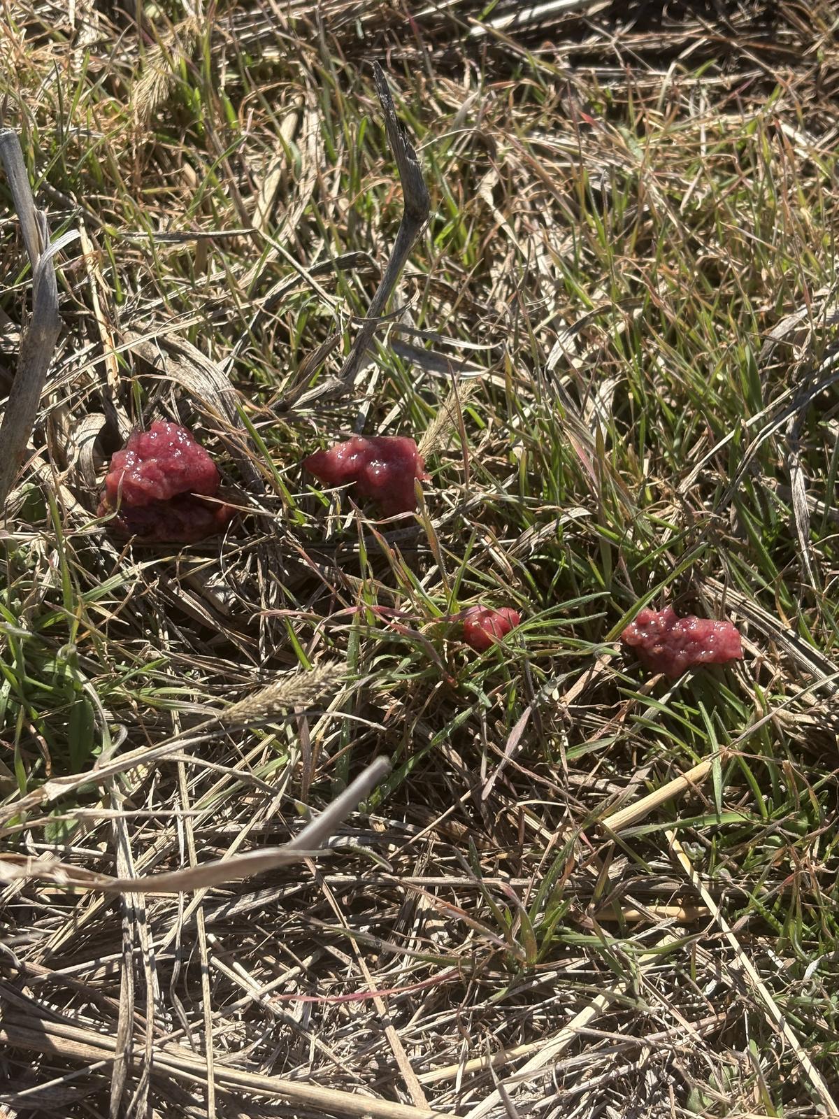 오늘 아침 첫 산책을 했는데, 그때 매우 묽은 변을 보았고, 이후 얼마 지나지 않아 사진에서 보이는 붉은색 고기 덩어리처럼 보이는 물질도 배출했습니다. 일반적인 변과 달라서 많이 걱정이 되었습니다