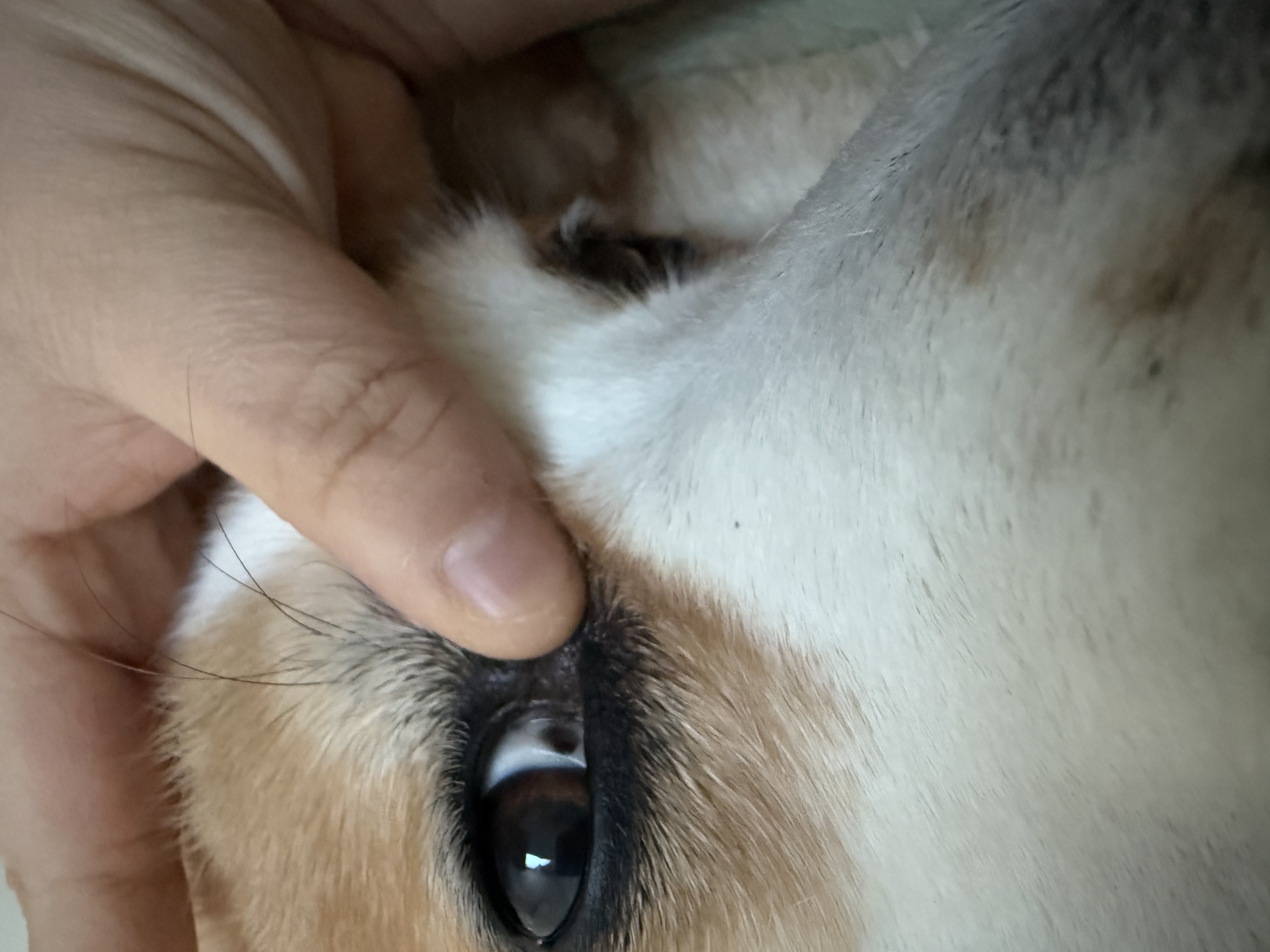 4살짜리 웰시코기인데 눈안쪽 검은색점어디아픈건가요?